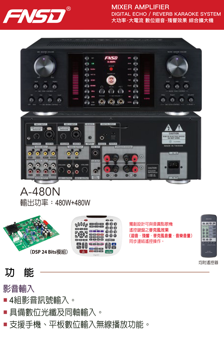 FNSD A-480N 升級版 數位迴音殘響效果 綜合擴大機(480W+480W)大功率大電流 卡拉OK擴大機