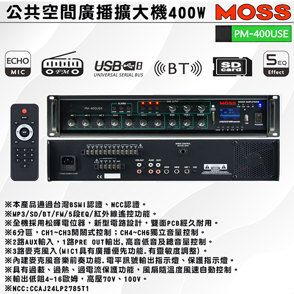 MOSS PM-400USE 商用/公共空間廣播擴大機 400W