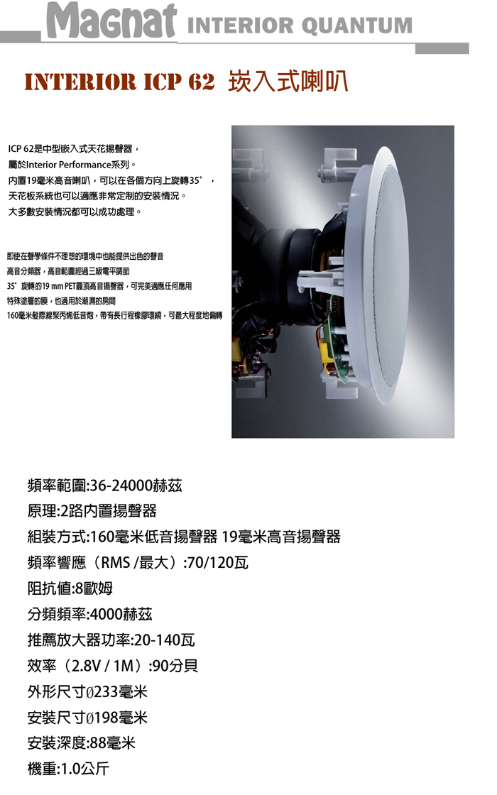 Magnat Interior ICP62P 崁入式喇叭 含電壓器(一對)