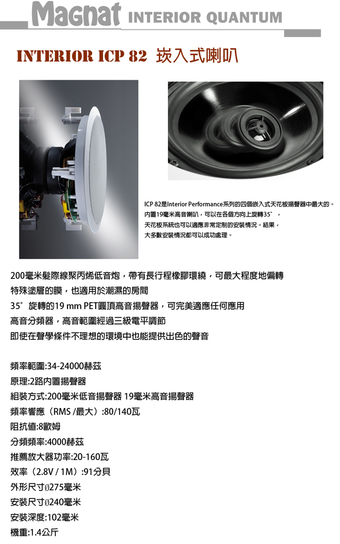 Magnat Interior ICP82P 崁入式喇叭(一對)含變壓器