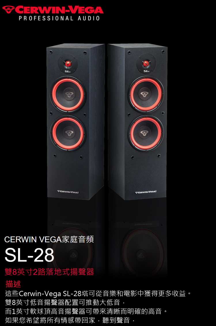 CERWIN-VEGA SL-28(對)雙8吋三音路落地型喇叭