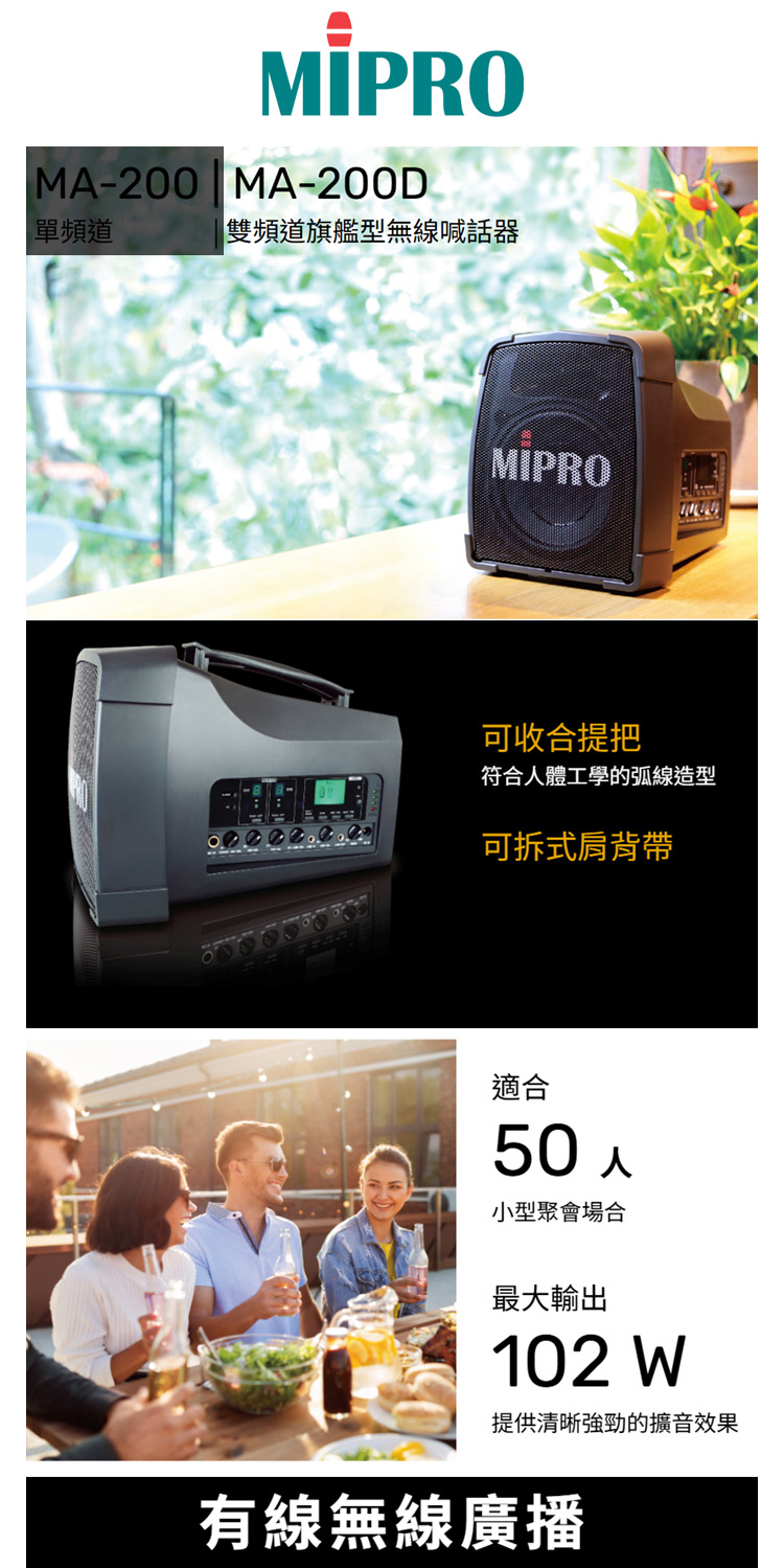 【MIPRO】MA-200D 雙頻道旗艦型無線喊話器5.8G(ACT-58H 配件六擇一)