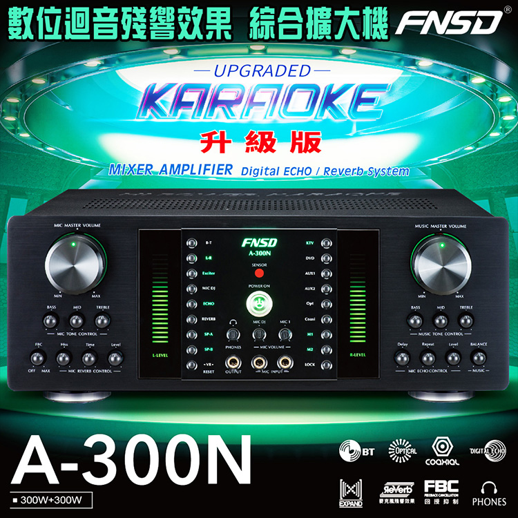 FNSD A-300N 升級版 數位迴音殘響效果 綜合擴大機(300W+300W)大功率大電流 卡拉OK擴大機