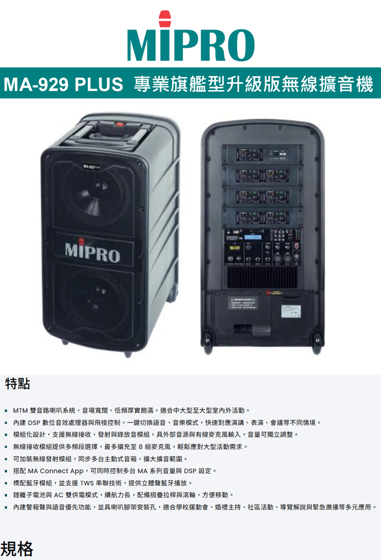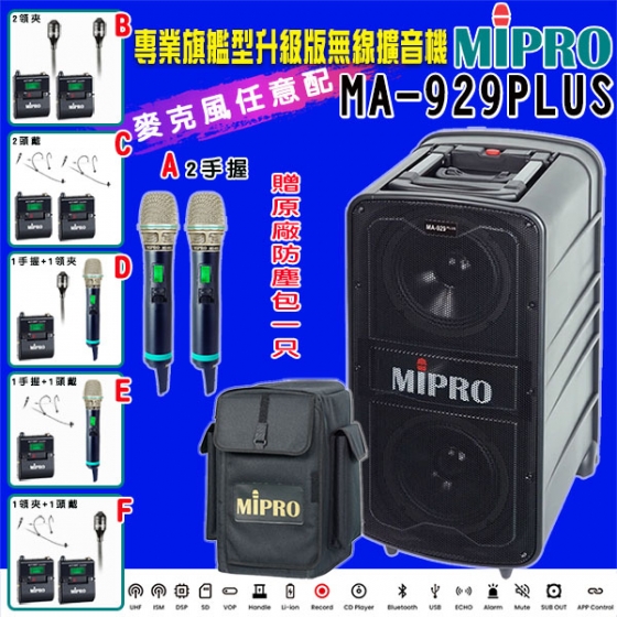 【MIPRO】MA-929PLUS 新旗艦型升級版無線擴音機(ACT-580H配件六擇一)