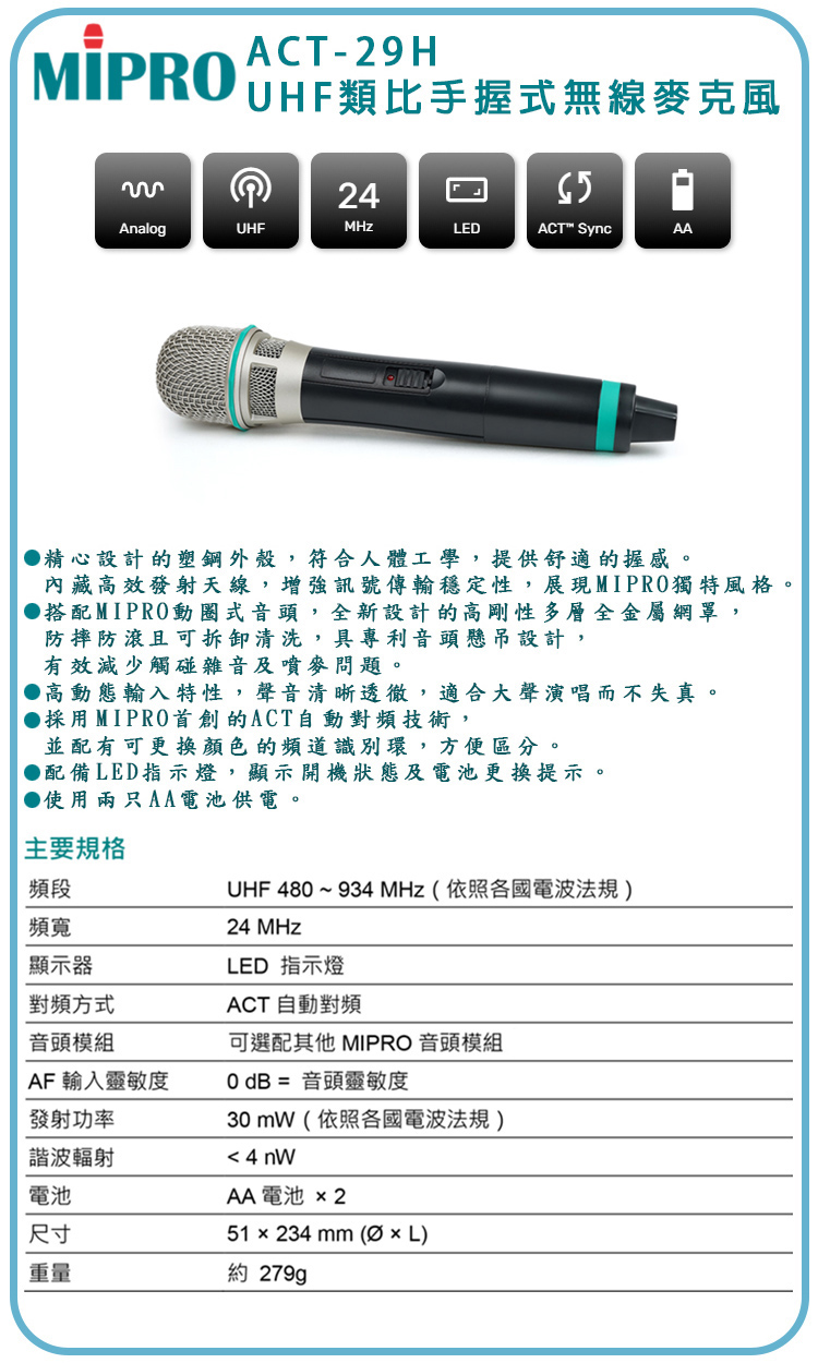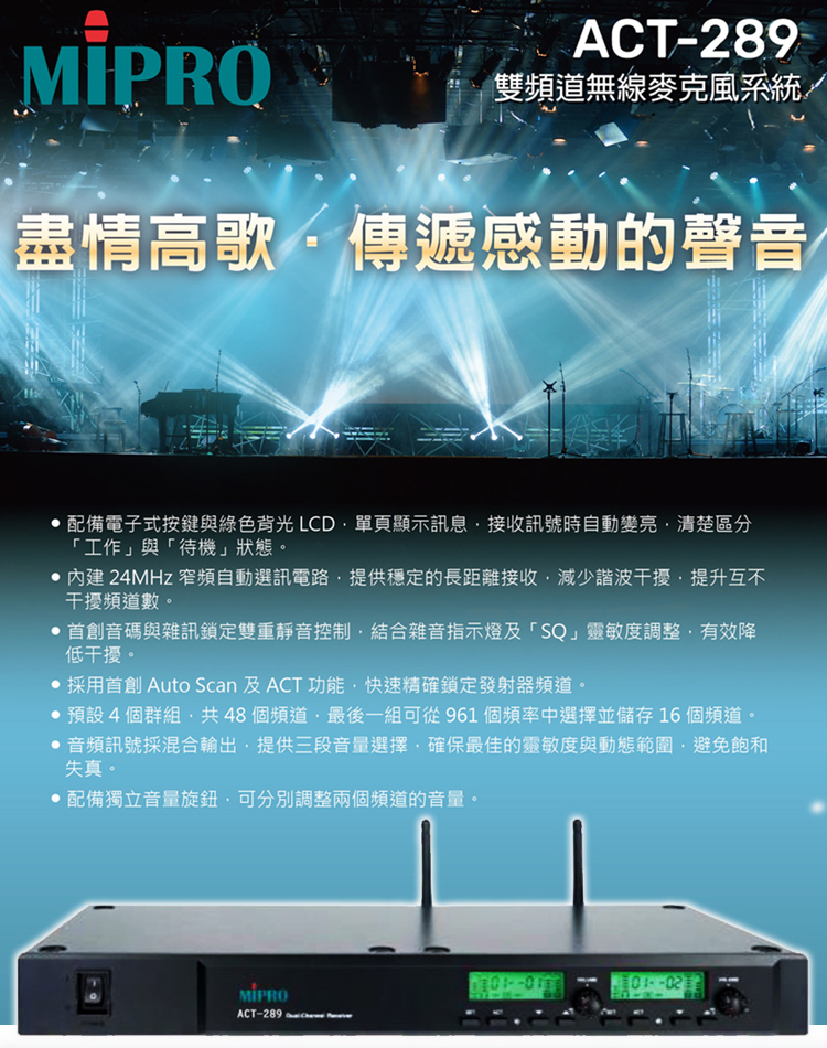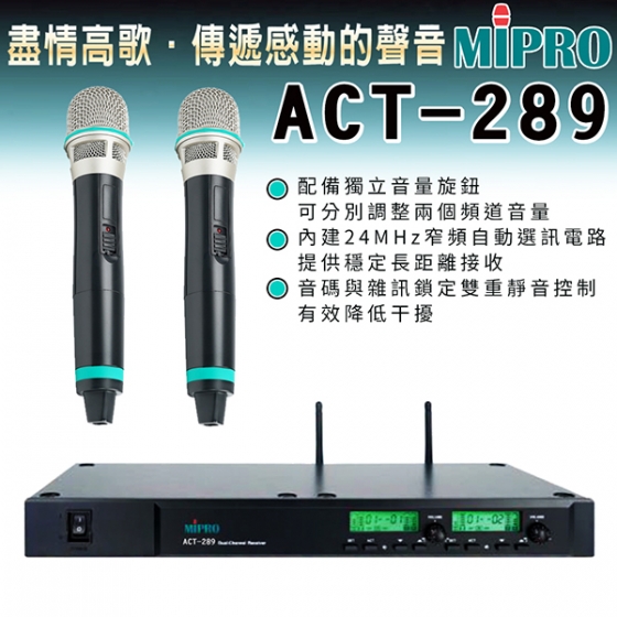 MIPRO ACT-289 雙頻道UHF無線麥克風 (ACT-29H/MU-80III)