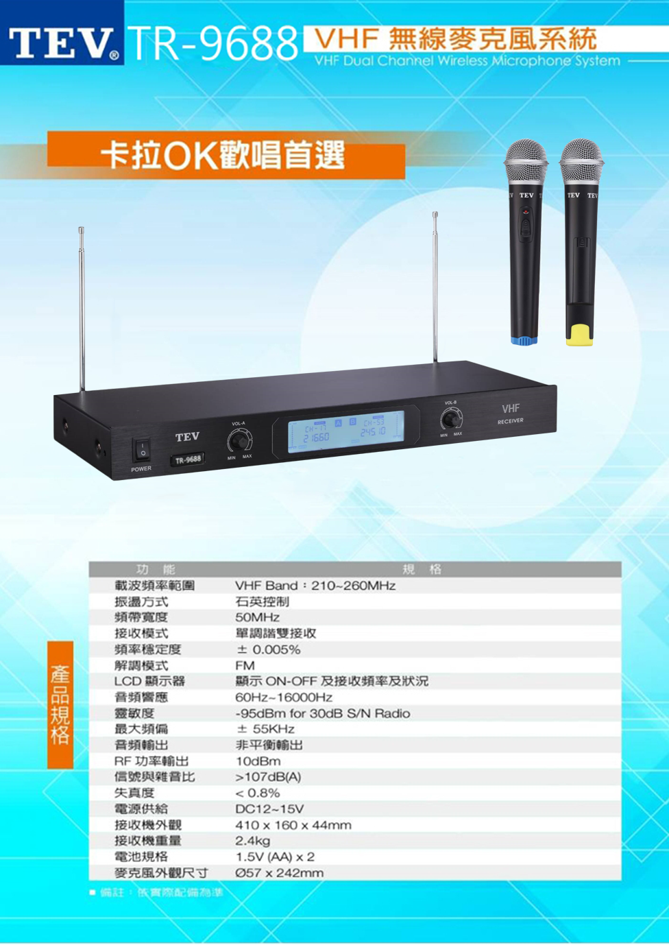 TEV TR-9688 手持2支無線麥克風組全新公司貨