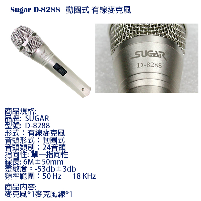 Sugar D-8288 動圈式麥克風(單支售/含6M麥克風線/收納盒) 全新公司貨