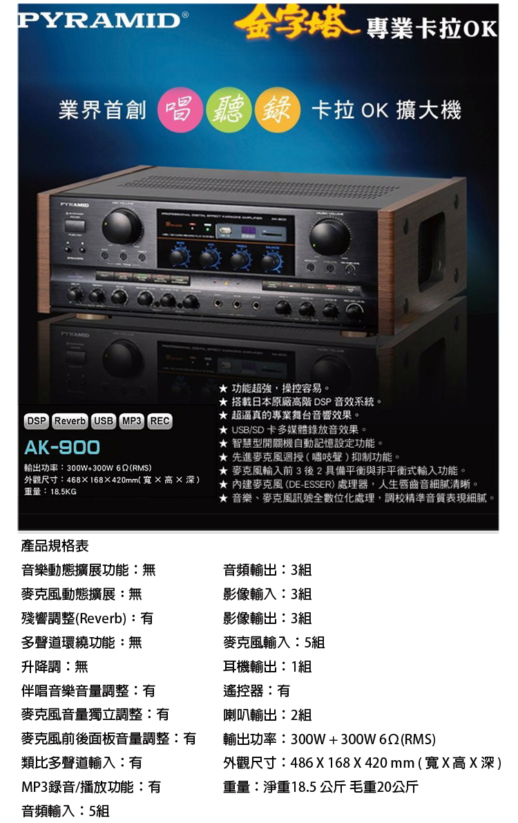PYRAMID金字塔 AK-900 數位迴音卡拉OK綜合擴大機 贈三項好禮 全新公司貨