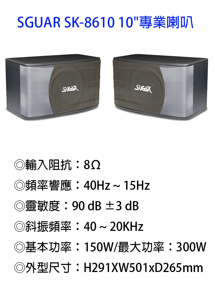 SUGAR SK-8610 卡拉OK喇叭 (對) 贈SPK-200B 25M 全新公司貨