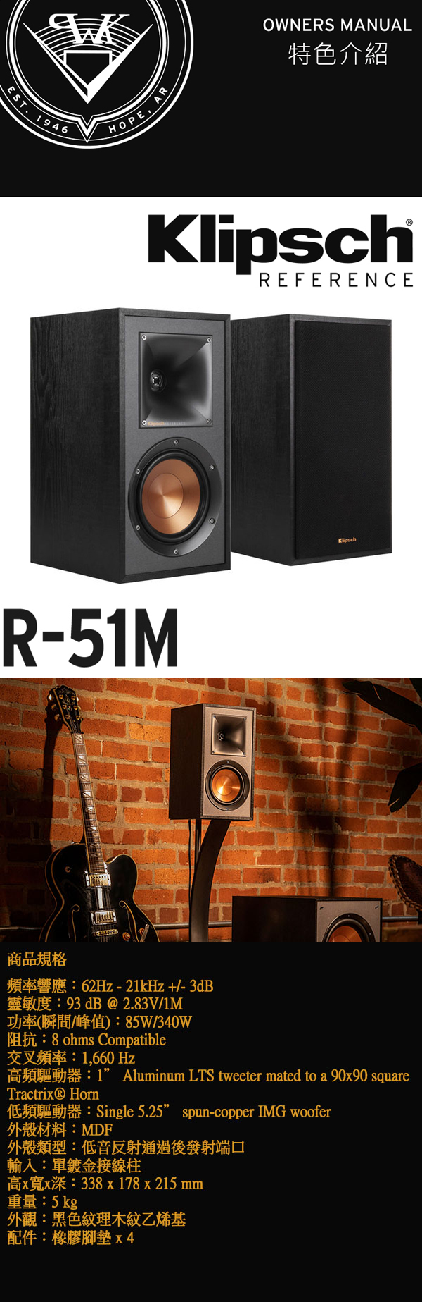 Klipsch R-51M 書架型喇叭一對 全新釪環公司貨