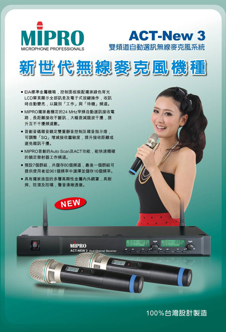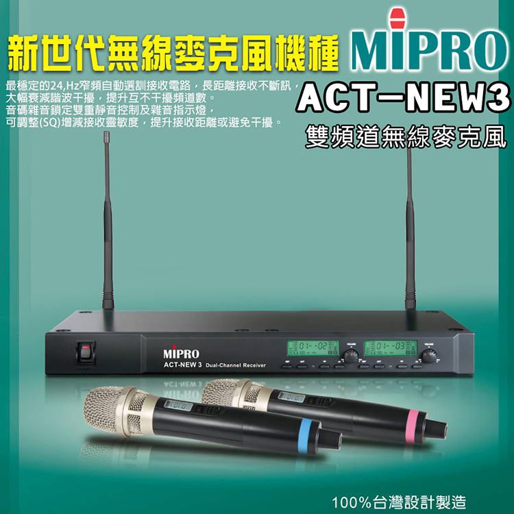MIPRO ACT-NEW3 配2手握式無線麥克風ACT-32H(雙頻道自動選訊無線麥克風/MU-90音頭)