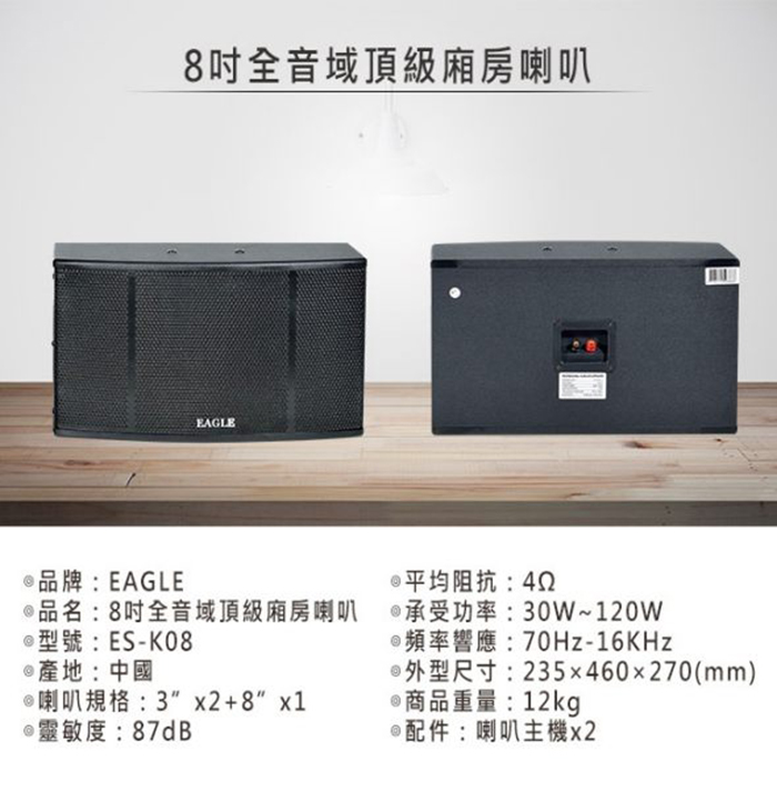 EAGLE ES-K08 8吋全音域頂級廂房喇叭(對) 全新公司貨
