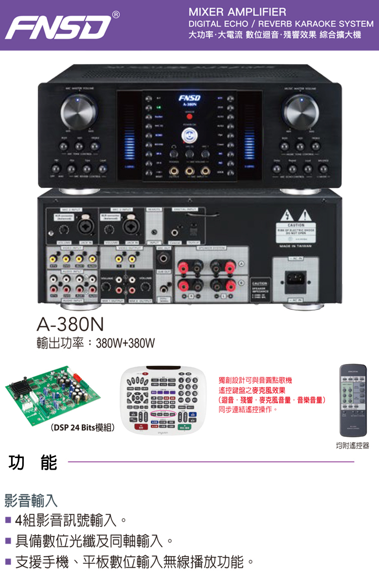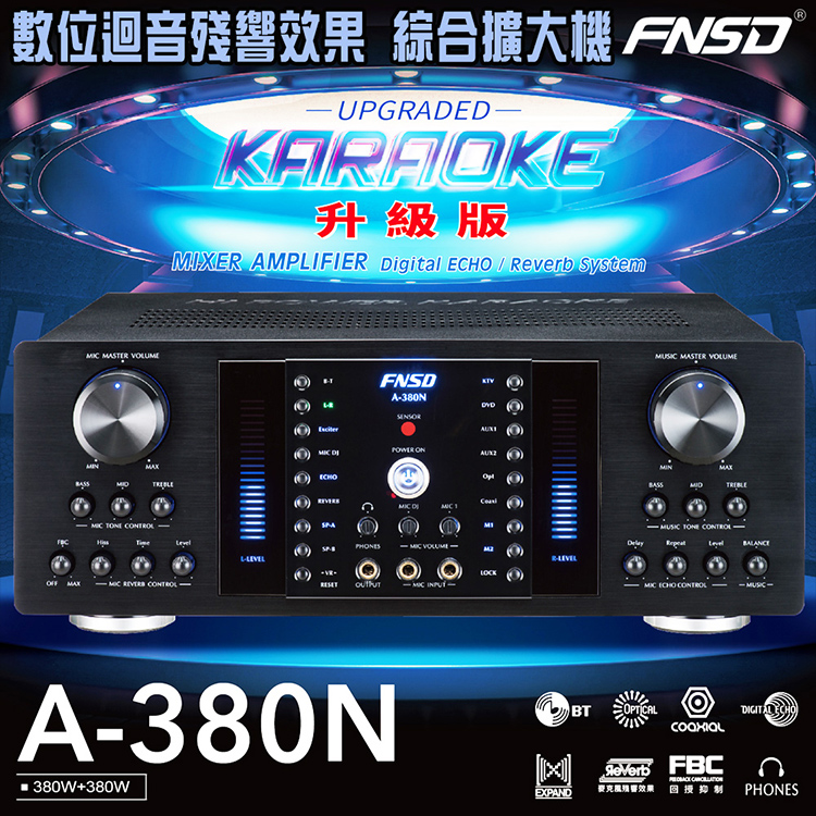 FNSD A-380N 升級版 數位迴音殘響效果 綜合擴大機(380W+380W)大功率大電流 卡拉OK擴大機