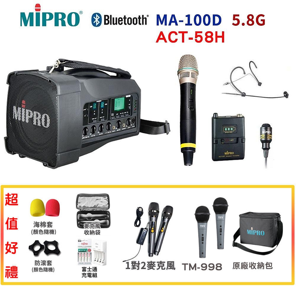 MIPRO MA-100D/ACT-58H 肩掛式5.8G藍芽無線喊話器 六種組合 贈多項好禮