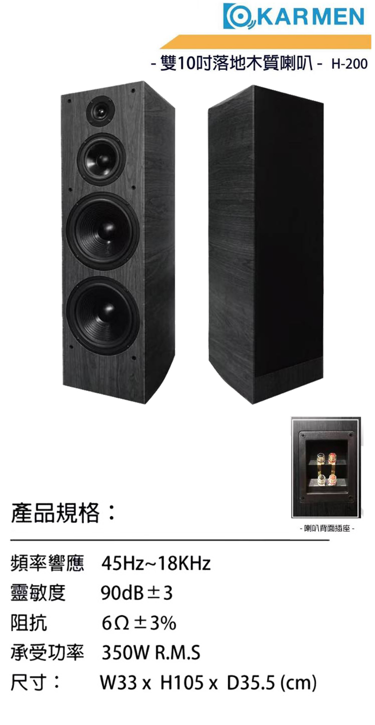 KARMEN H-200 家庭劇院/卡拉OK專業喇叭 黑色一對