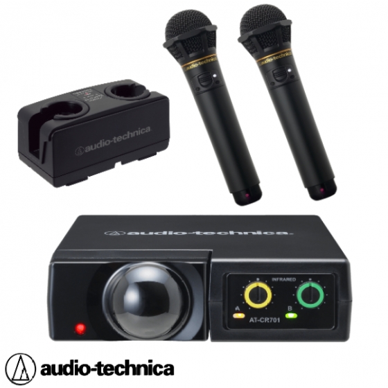 audio-technica AT-CR701(W)+AT-CLM9000TX+BC701 2MHz頻帶紅外線雙頻道接收器+麥克風+麥克風充電座