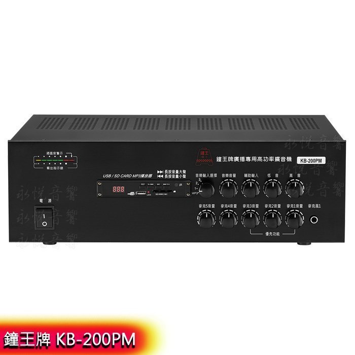 鐘王牌 KB-200PM 功率輸出 200W PA廣播專用擴音機 支援 MP3 USB SD卡 全新公司貨