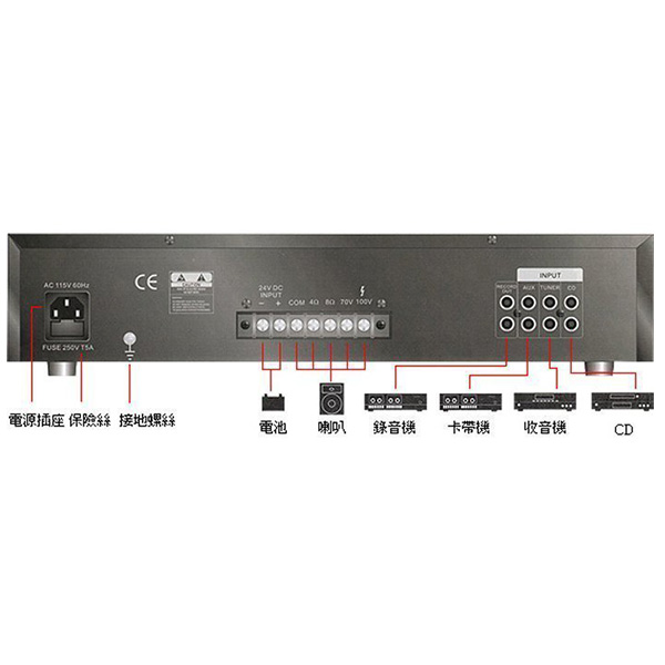麥克風增益>60dB; CD,TUNER,AUX增益>80dB |