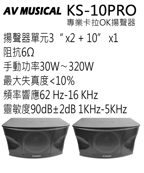 AV MUSICAL KS-10PRO 懸吊式/立放/平放式卡拉OK專用喇叭(對)