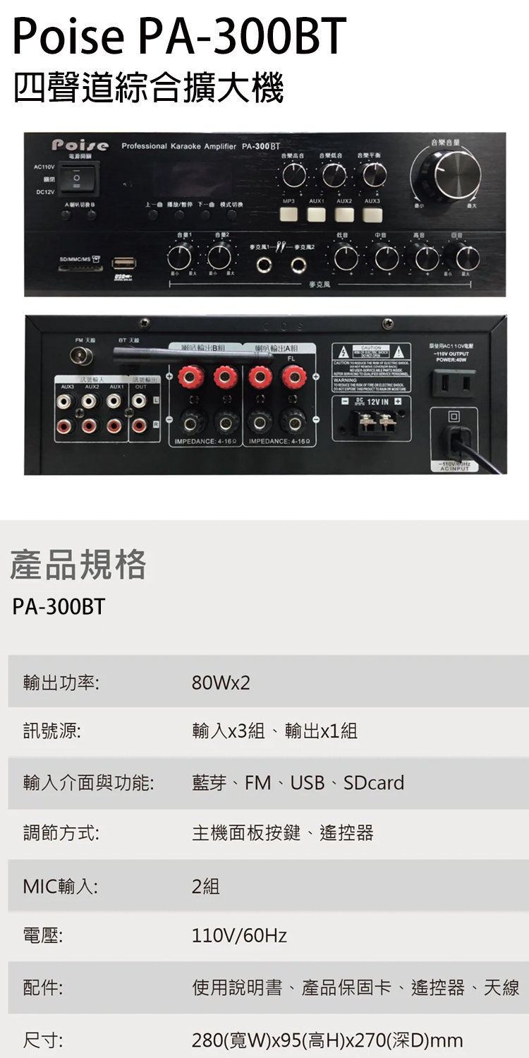 POISE PA-300BT 綜合擴大機 全新公司貨