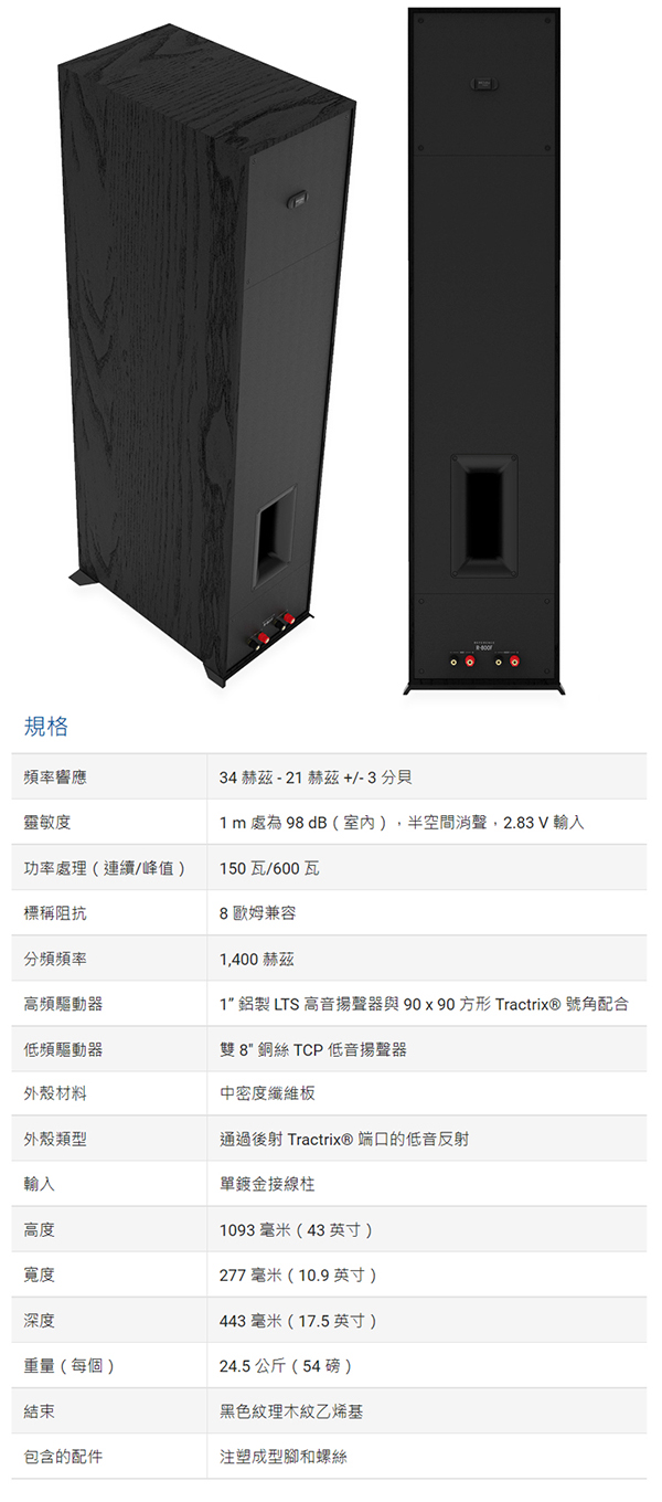 KLIPSCH R-800F 主聲道落地式喇叭(對) 全新釪環公司貨