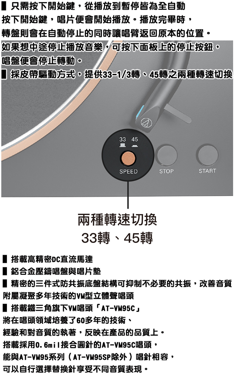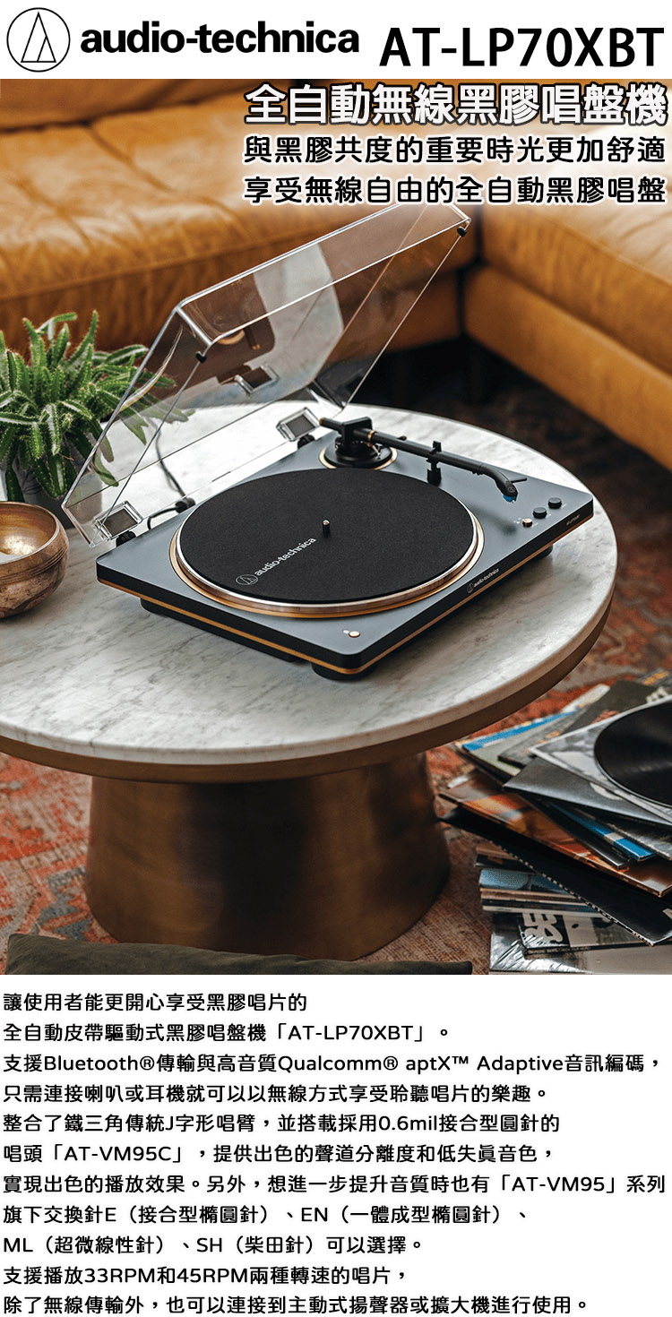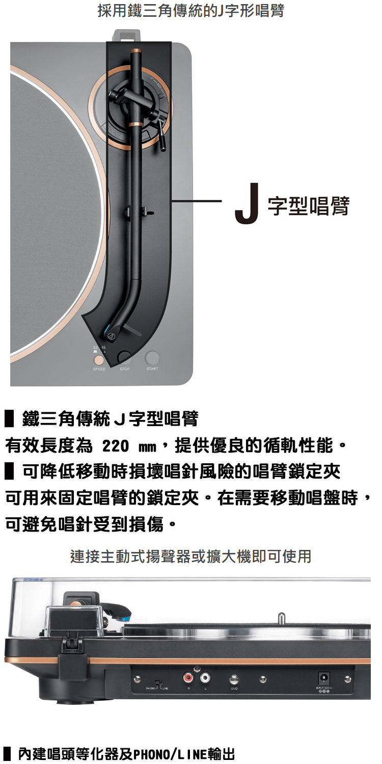 【audio-technica 鐵三角】AT-LP70XBT 全自動無線黑膠唱盤機 黑銅