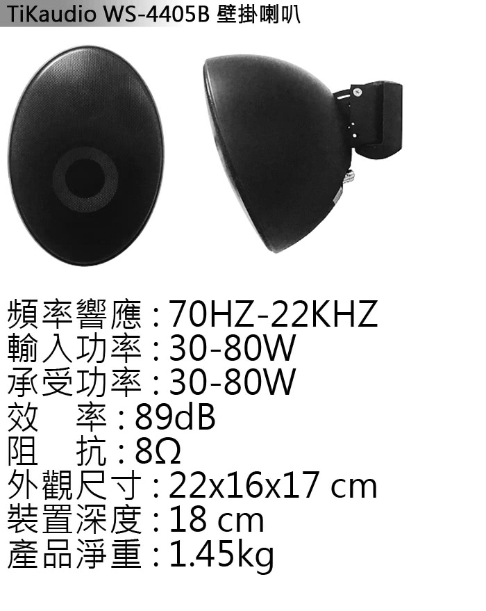 TiKaudio WS-4405 PA 環繞喇叭(對/黑) 含變壓器 全新公司貨