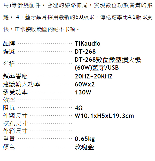 Tikaudio DT-268 數位微型擴大機(D類60W) 藍芽/USB
