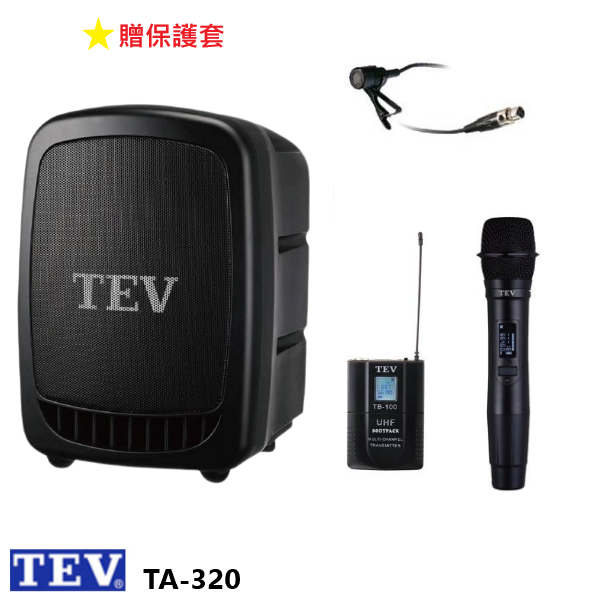 TEV TA-320 藍芽最新版/USB/SD鋰電池 手提式無線擴音機 單手握+領夾式+發射器 贈保護套