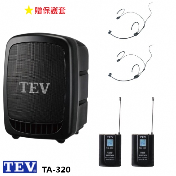 TEV TA-320 藍芽最新版/USB/SD鋰電池 手提式無線擴音機 頭戴式2組+發射器2組 贈保護套