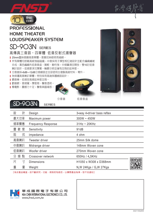 FNSD SD-903N 雙10吋落地式低音喇叭 (對) 全新公司貨