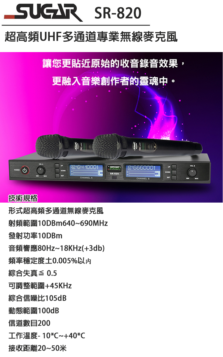 SUGAR SR-820 超高頻多通道無線麥克風 全新公司貨