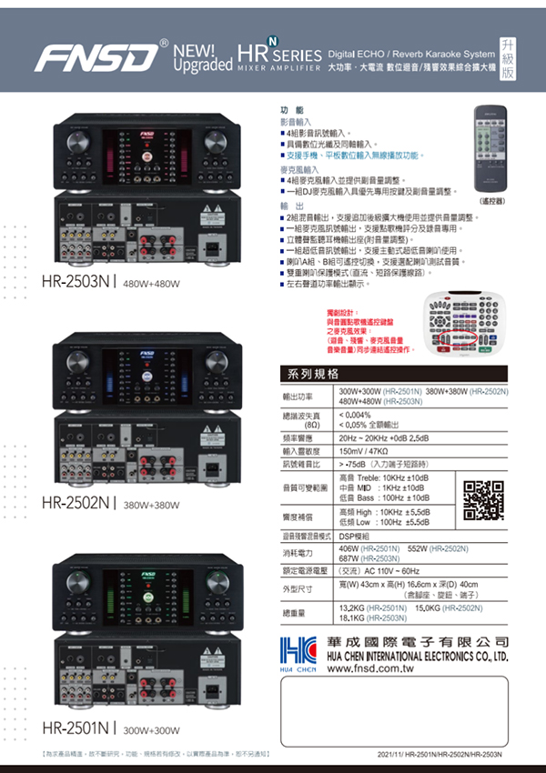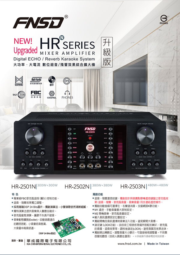 FNSD HR-2503N 數位迴音/殘響效果綜合擴大機 全新公司貨