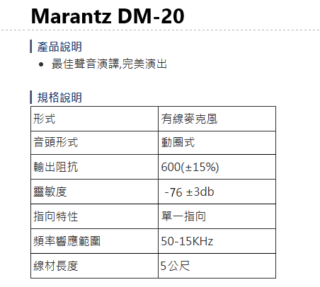 MARANTZ DM-20 有線麥克風 (支) 全新公司貨