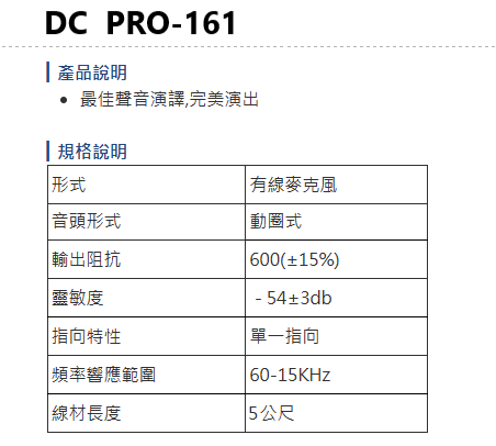 DC PRO-161 有線麥克風 (支) 歌唱班/演講 最佳選擇 全新公司貨