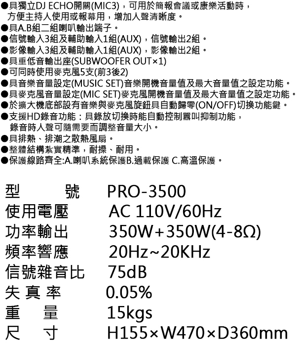 AudioKing PRO-3500 專業/家庭兩用綜合擴大機 全新公司貨