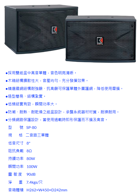 AudioKing SP-80 8吋懸吊式喇叭 (對) 贈SPK-200B喇叭線25M 全新公司貨