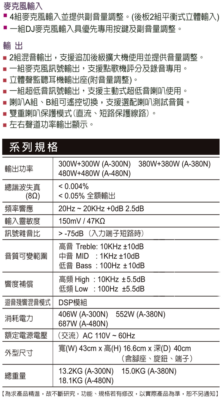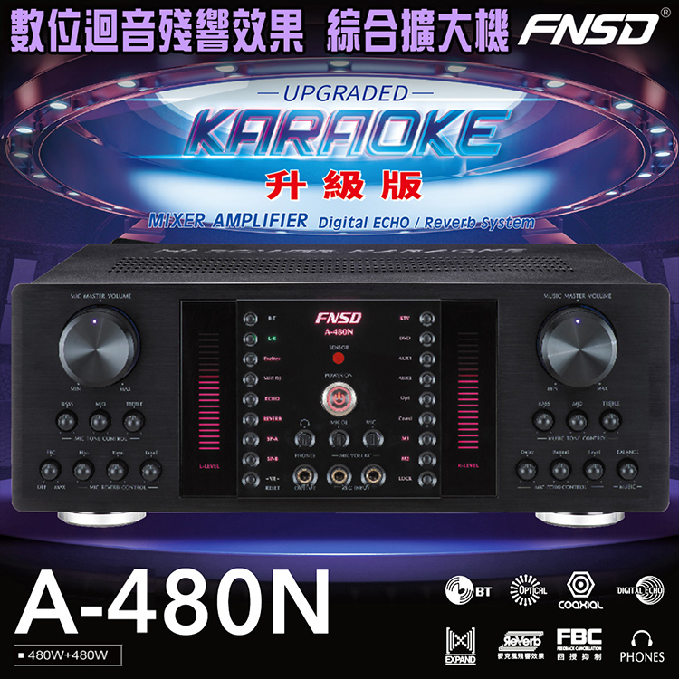 FNSD A-480N 升級版 數位迴音殘響效果 綜合擴大機(480W+480W)大功率大電流 卡拉OK擴大機