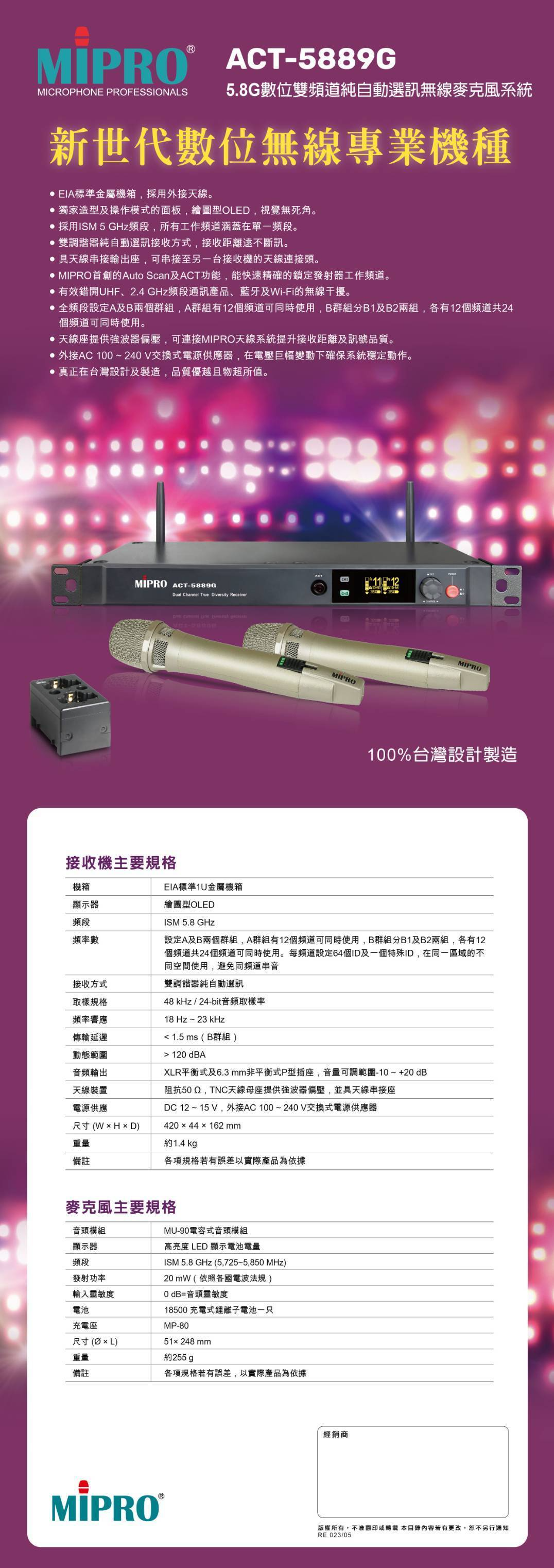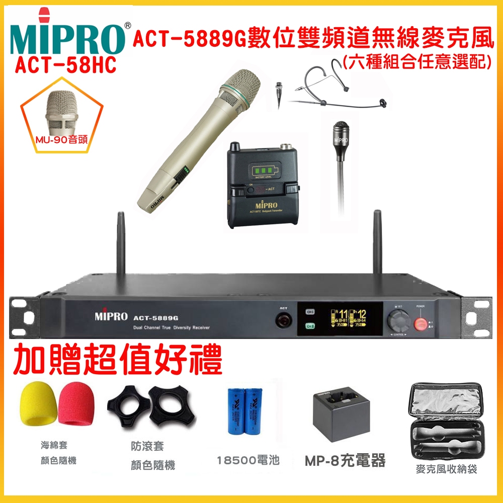 MIPRO ACT-5889G/ACT-58HC/MU-90 5.8G數位雙頻道無線麥克風 六種組合 贈多項好禮