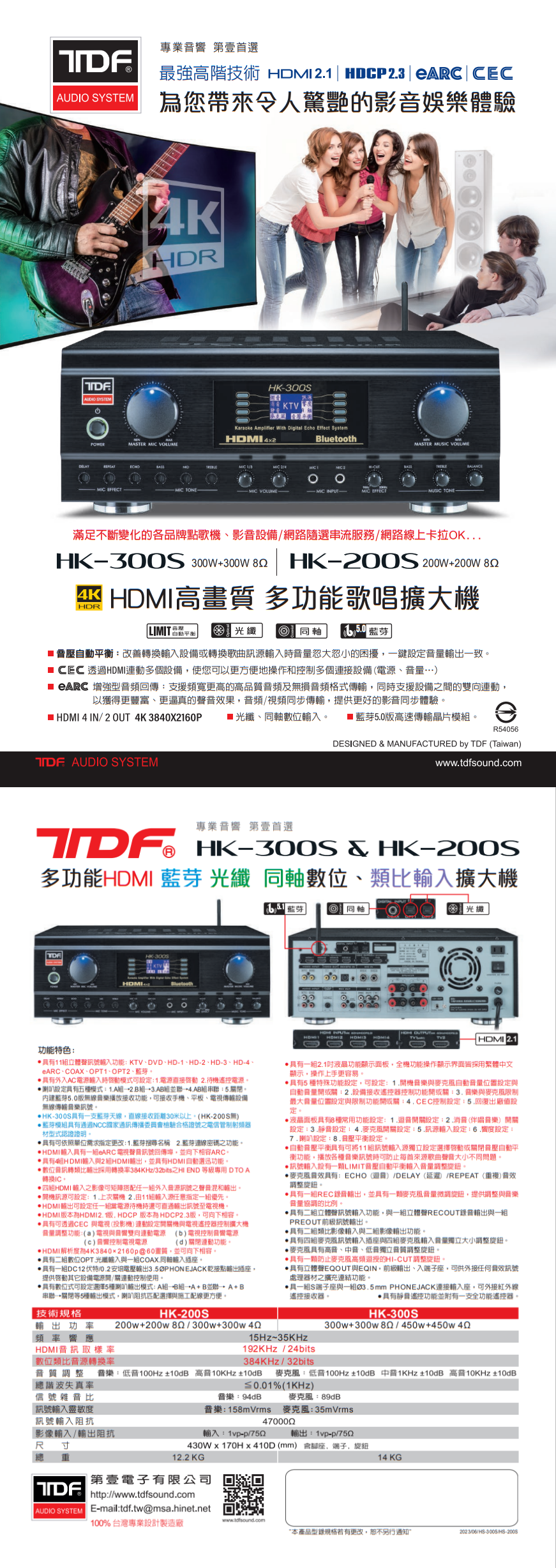 TDF HK-200S 4K HDMI高畫質 多功能歌唱擴大機 贈有線麥克風2支 全新公司貨