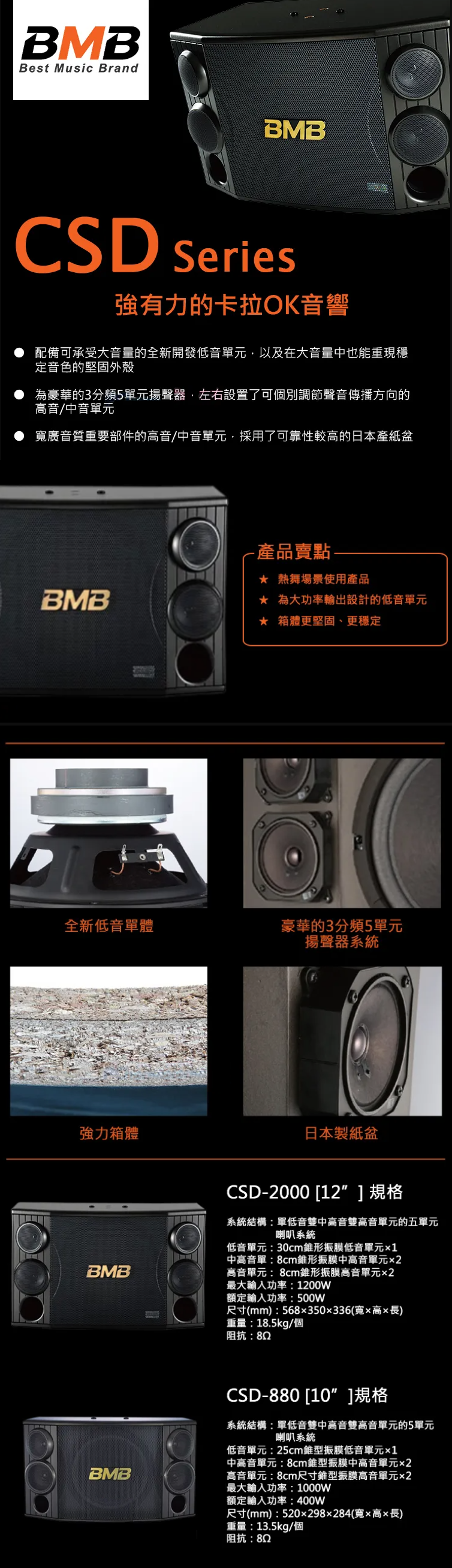 BMB CSD-880(SE) 10吋卡拉OK專用喇叭 (對) 全新公司貨
