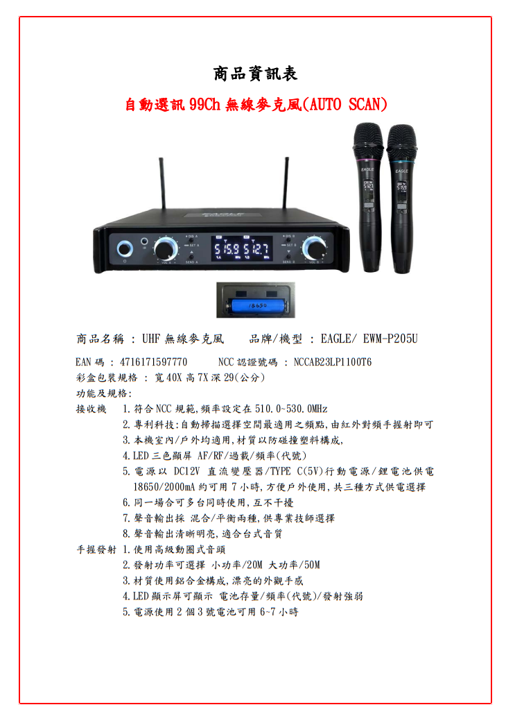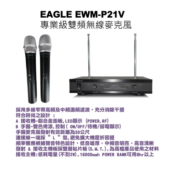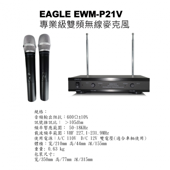 EAGLE EWM-P205U 自動選訊無線麥克風 全新公司貨