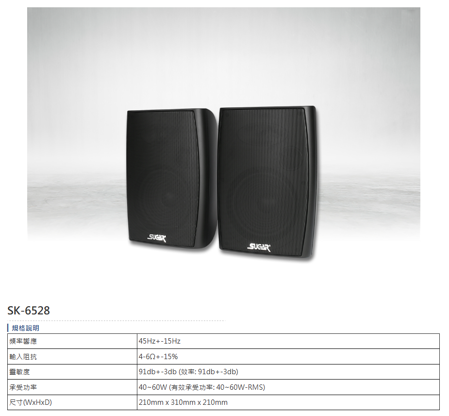 SUGAR SK-6528 懸吊壁掛喇叭 (對) 贈喇叭線25M一綑 全新公司貨