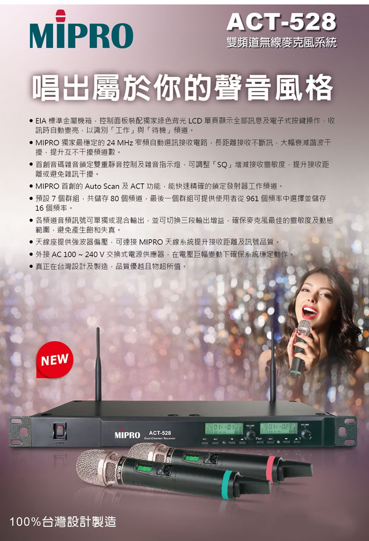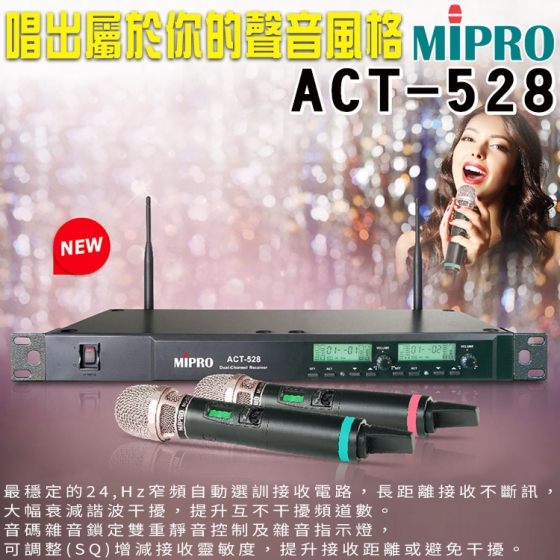 MIPRO ACT-528 雙頻道無線麥克風(雙手握ACT-500H/MU90A)