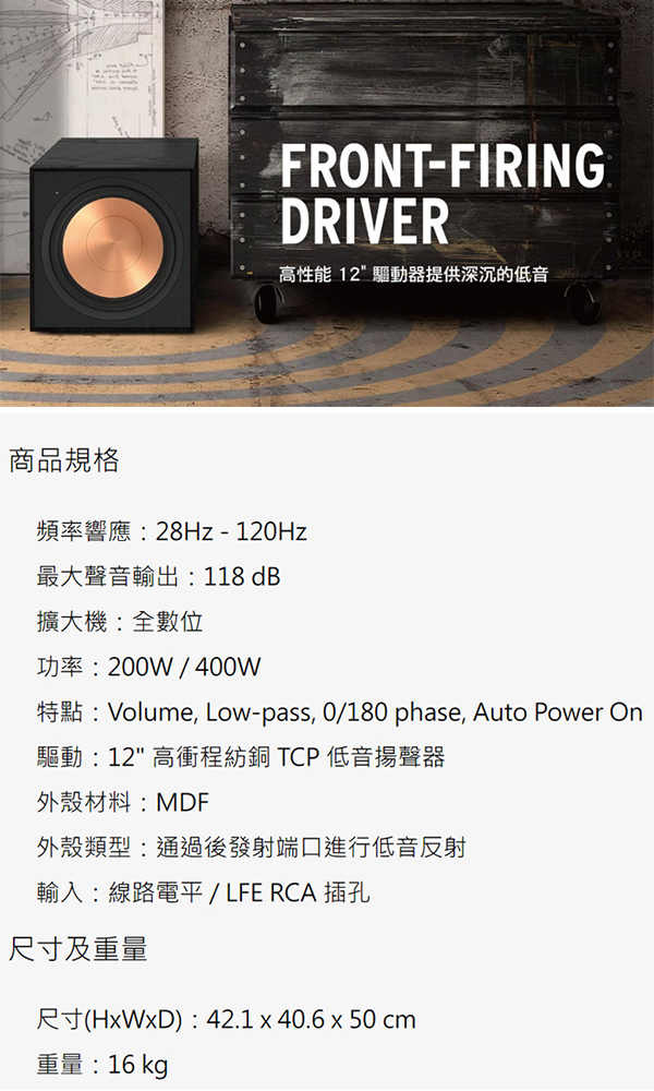 KLIPSCH R-121SW 12吋重低音喇叭 全新公司貨