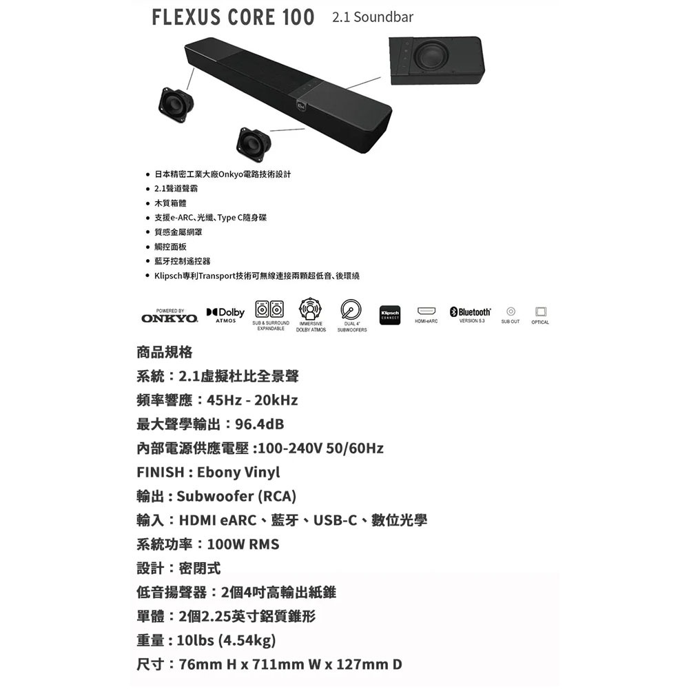 輸入:HDMI eARC、藍牙、USB-C、光纖