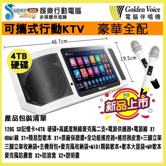 Golden Voice 金嗓 Super song 700 (豪華全配) 攜帶式多功能電腦伴唱機 贈多項好禮