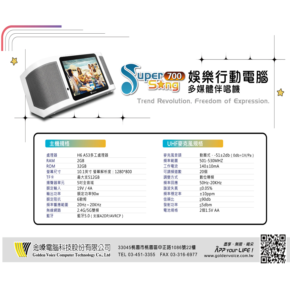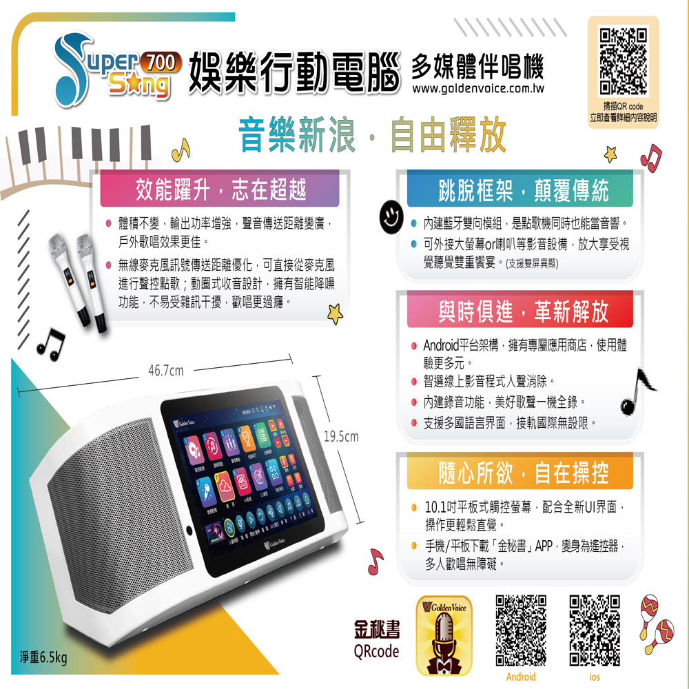 Golden Voice 金嗓 Super song 700 (無敵全配) 攜帶式多功能電腦伴唱機 贈多項好禮