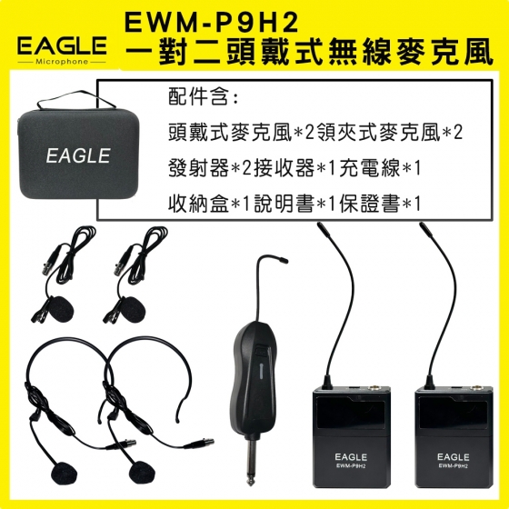 EAGLE EWM-P9H2 一對二頭戴式無線麥克風 全新公司貨