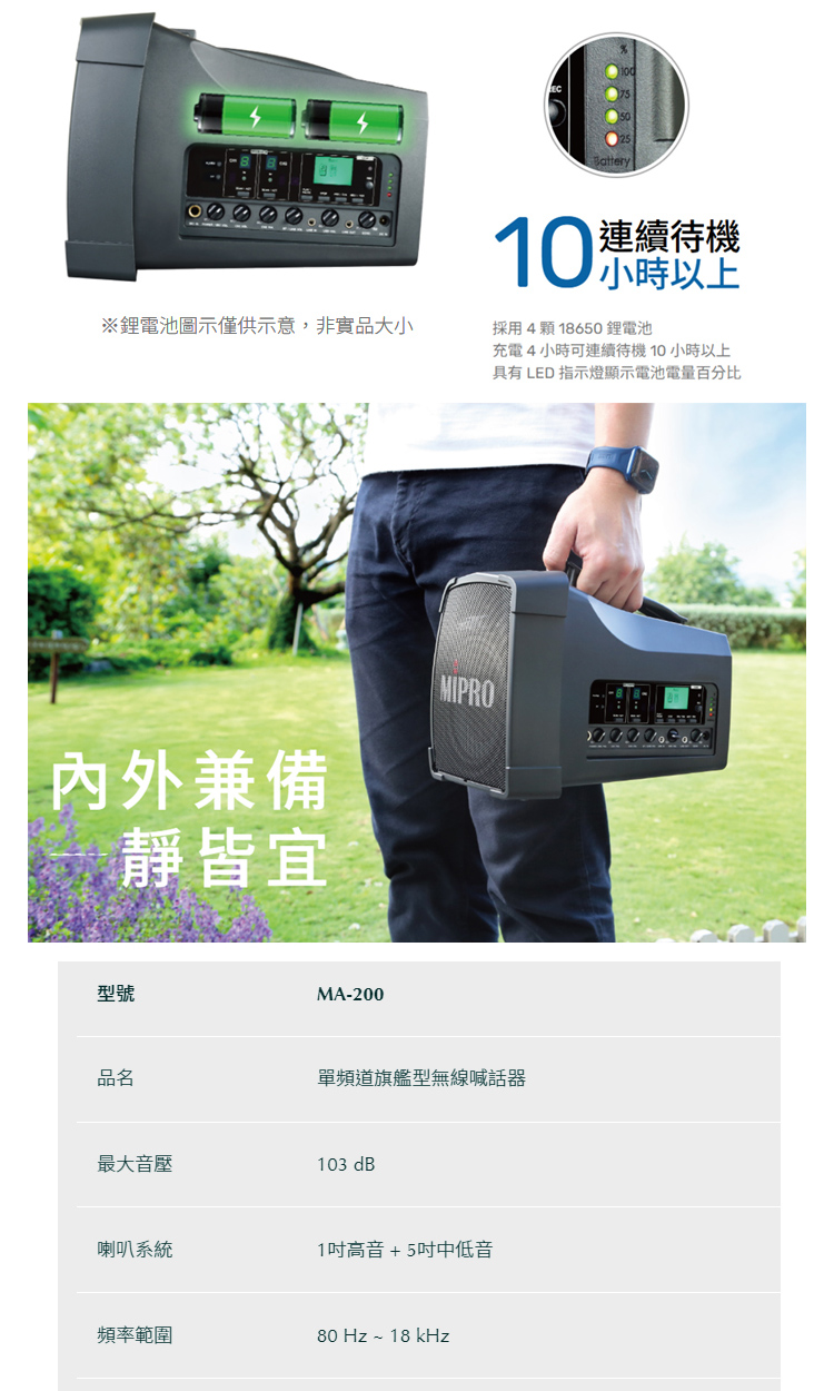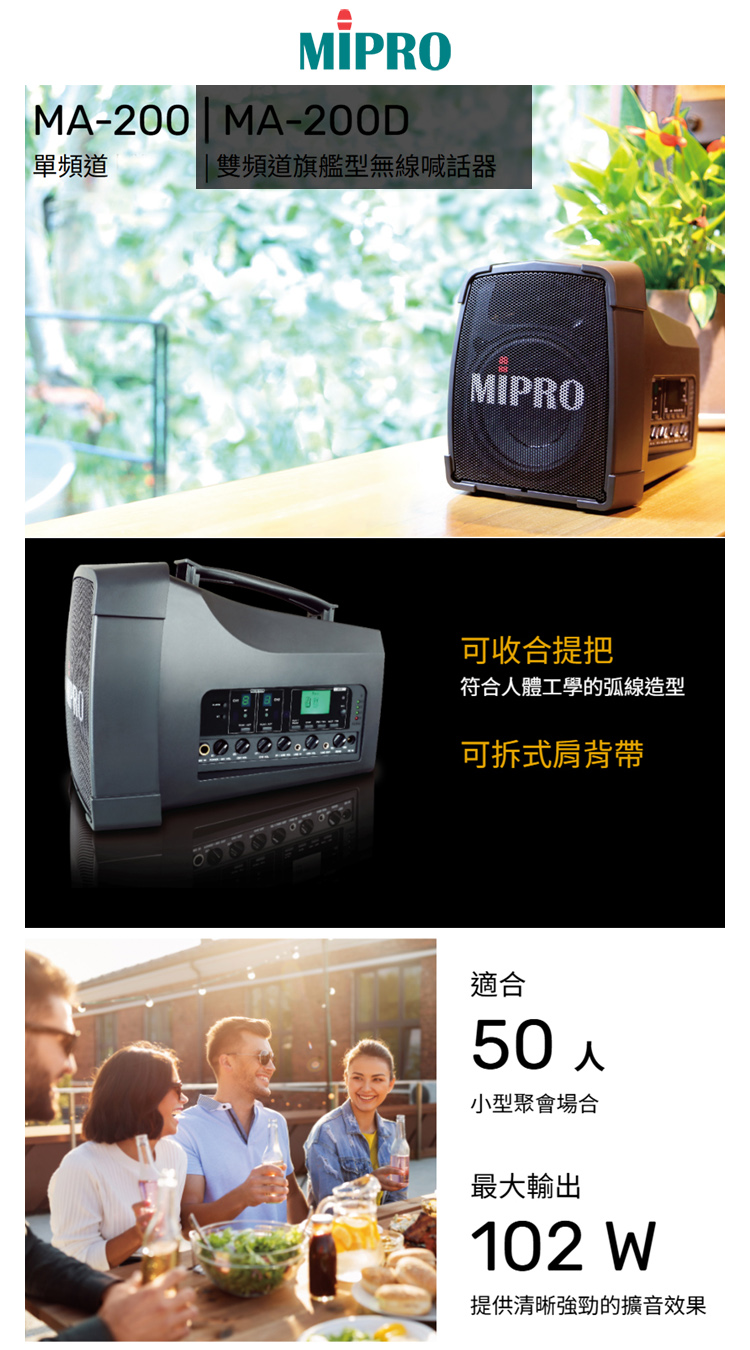 【MIPRO】MA-200 單頻道旗艦型無線喊話器UHF (ACT-32H 配件三擇一)